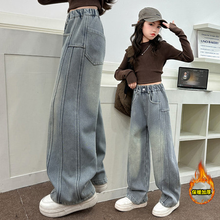 檀*饰下载视频“XM829侧缝拼条牛仔阔腿裤”